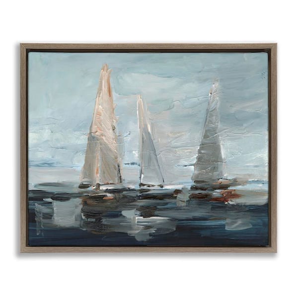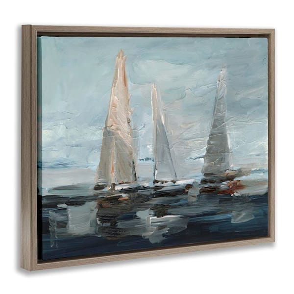 Painterly Sailboat Trio by Ethan Harper Brown Floater Frame Typography Graphic Art Print 17 in. x 21 in.