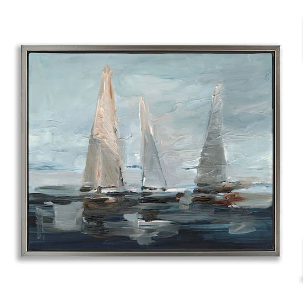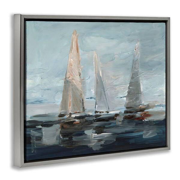 Painterly Sailboat Trio by Ethan Harper Gray Floater Frame Typography Graphic Art Print 17 in. x 21 in.