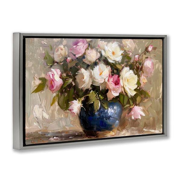 Painterly Vase of Roses by LSR Design Studio Gray Floater Frame Nature Graphic Art Print 21 in. x 31 in.