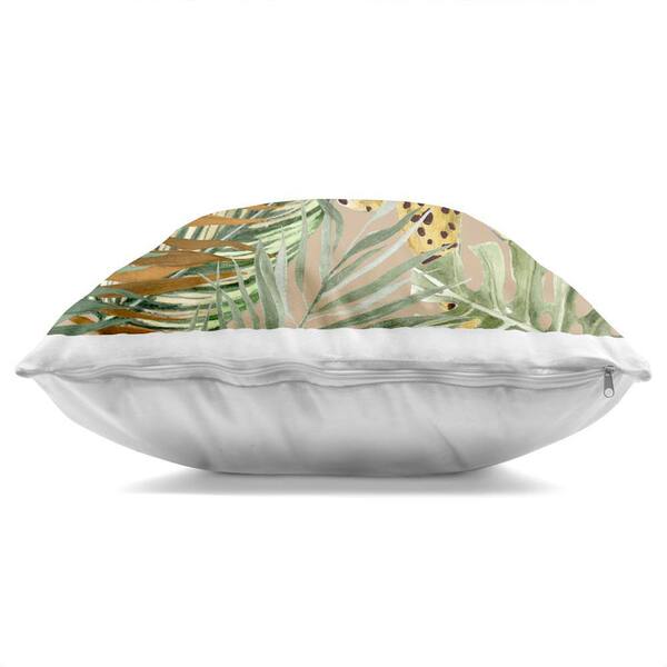 Palm Leaves Surrounding Leopard Tan Abstract Polyester 18 in. x 18 in. Throw Pillow