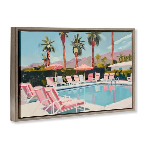 Palm Springs Swimming Pool by Arlington Prints Brown Floater Frame Nature Graphic Art Print 21 in. x 31 in.