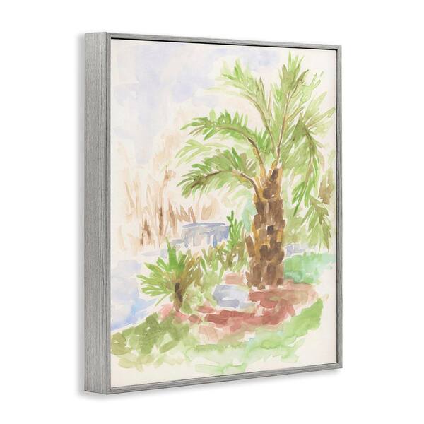 Palm Tree River's Edge by June Erica Vess Gray Framed Nature Giclee Art Print 30 in. x 24 in.