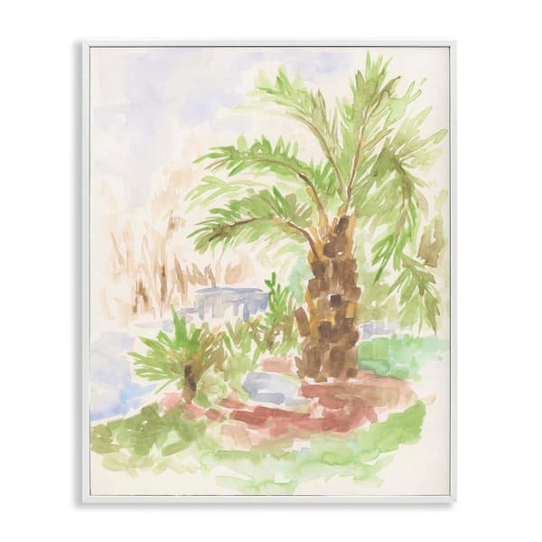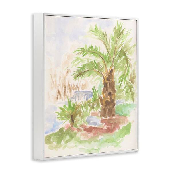 Palm Tree River's Edge by June Erica Vess White Framed Nature Giclee Art Print 20 in. x 16 in.