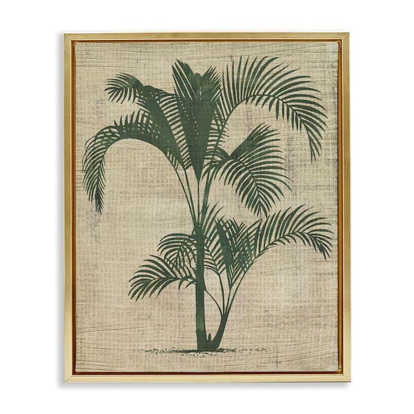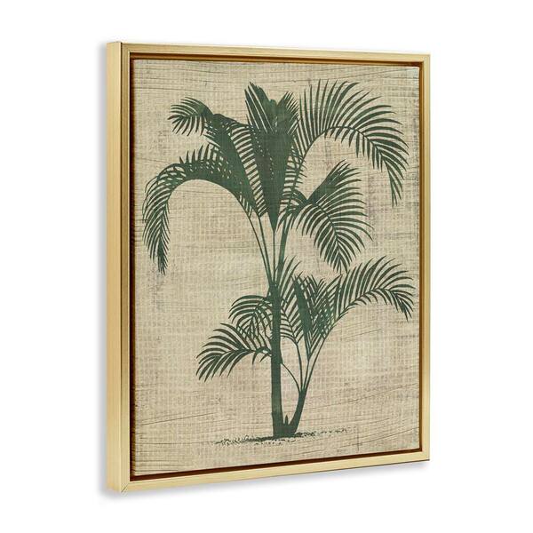 Palm on Woven Pattern by June Erica Vess Gold Floater Frame Nature Graphic Art Print 31 in. x 25 in.