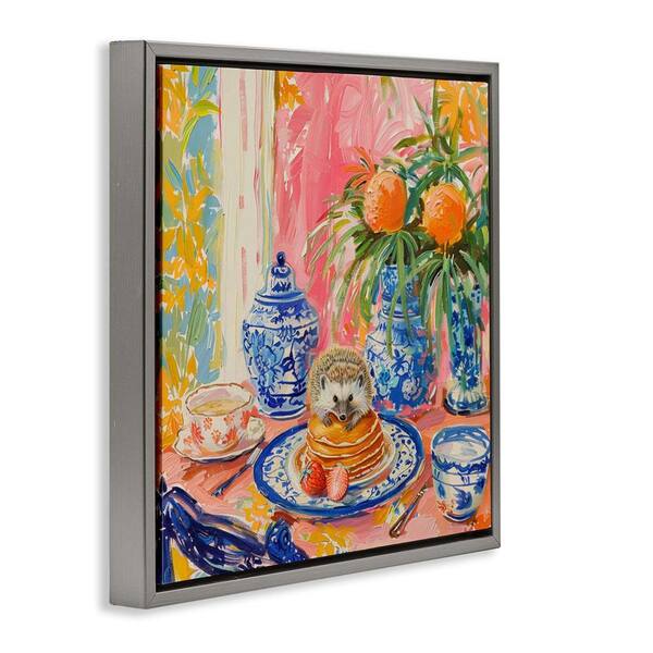Pancakes Stack & Hedgehog by LSR Design Studio Gray Floater Frame Nature Graphic Art Print 18 in. x 18 in.
