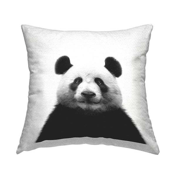 Panda Bear Simple Portrait White Square Outdoor Throw Pillow