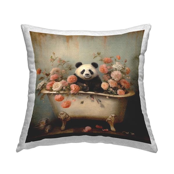 Panda & Peonies Tub Outdoor Printed Throw Pillow by Lazar Studio