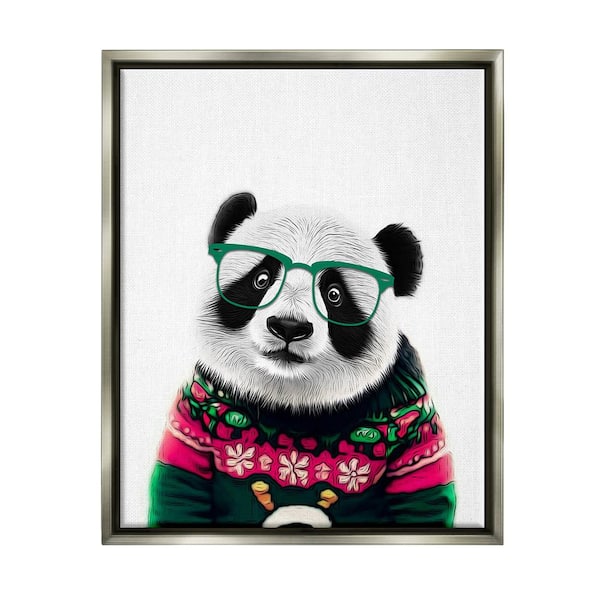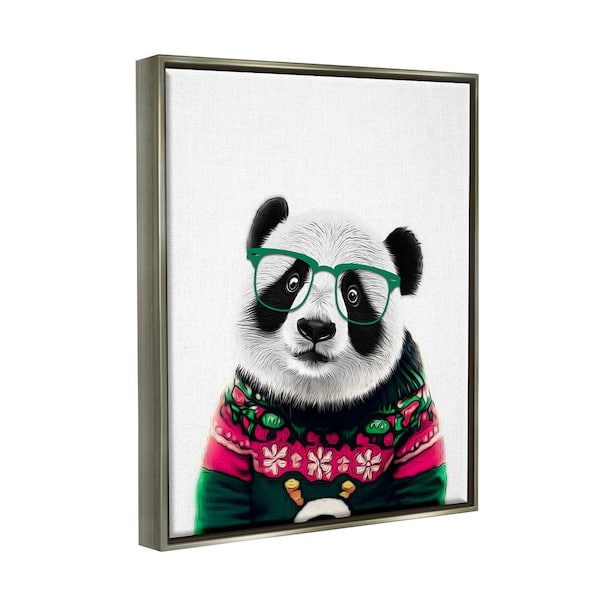 Panda in Holiday Sweater by Annalisa Latella 1 Piece Floater Frame Graphic Print Animal Poster Art Print 31 in. x 25 in.