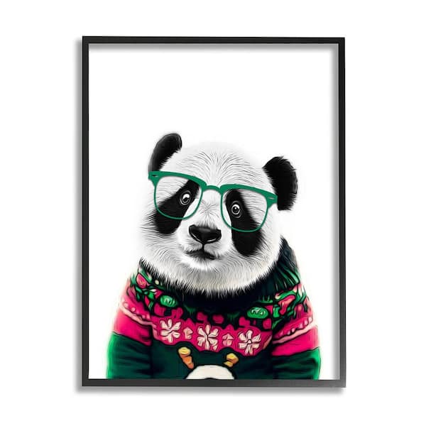 Panda in Holiday Sweater by Annalisa Latella 1-Piece Framed Graphic Print Animal Poster Art Print 20 in. x 16 in.