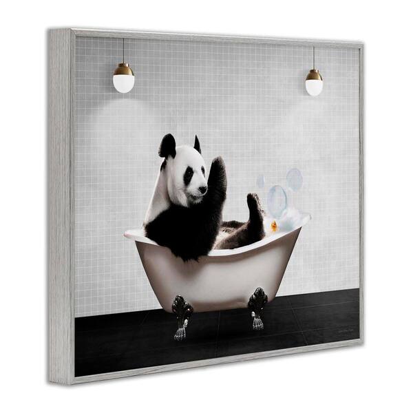 Panda in Modern Bubble Bath by Seven Trees Design Gray Framed Animal Giclee Art Print 11 in. x 14 in.