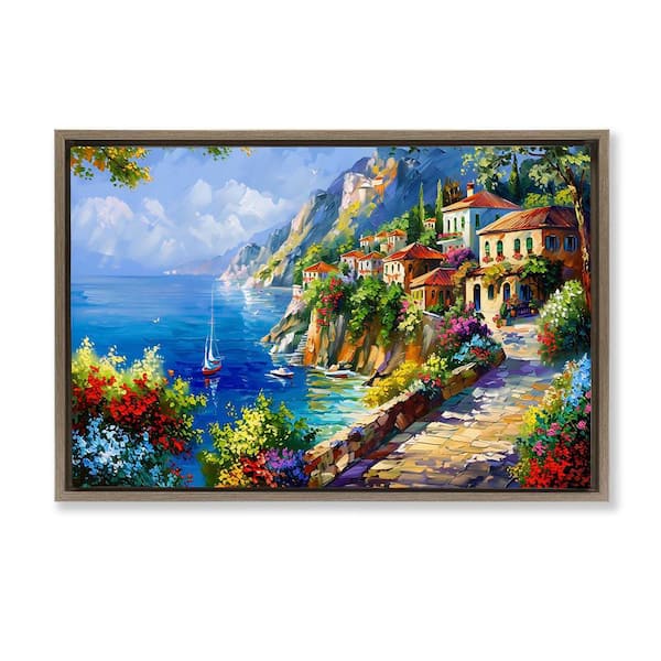 Panoramic Mountain View by LSR Design Studio Brown Floater Frame Nature Graphic Art Print 21 in. x 31 in.