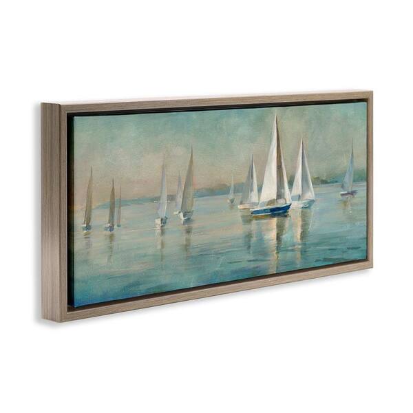 Panoramic Sailing at Sunrise by Danhui Nai Brown Floater Frame Coastal Graphic Art Print 11 in. x 25 in.