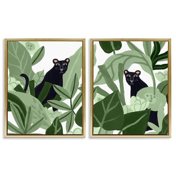 Panthers Among Tropics by June Erica Vess 2-Pieces Gold Floater Frame Animal Graphic Art Print 31 in. x 25 in.