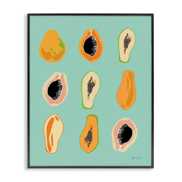 Papaya Fruits on Blue by Yvette St. Amant Black Framed Food Giclee Art Print 30 in. x 24 in.