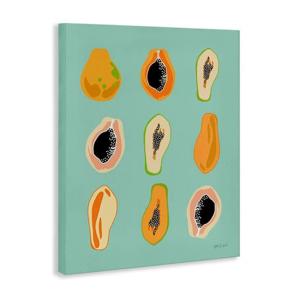Papaya Fruits on Blue by Yvette St. Amant Unframed Food Graphic Art Print 40 in. x 30 in.