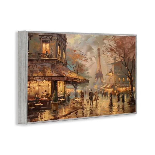Parisian Fall Townscape by LSR Design Studio Gray Framed People Giclee Art Print 12 in. x 18 in.