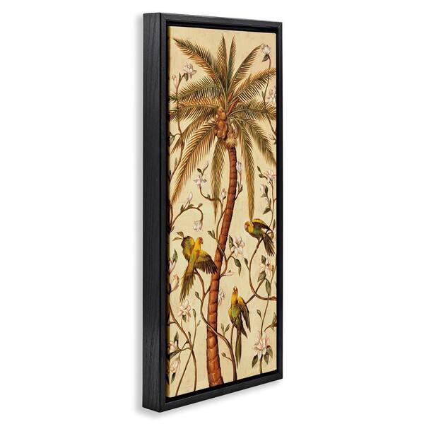Parrots and Curvy Palm Tree by Rodolfo Jimenez Black Floater Frame Nature Graphic Art Print 25 in. x 11 in.