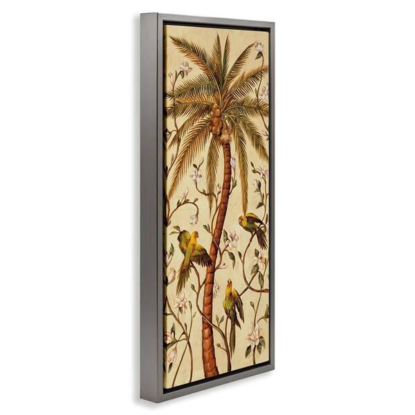 Parrots and Curvy Palm Tree by Rodolfo Jimenez Gray Floater Frame Nature Graphic Art Print 31 in. x 15 in.