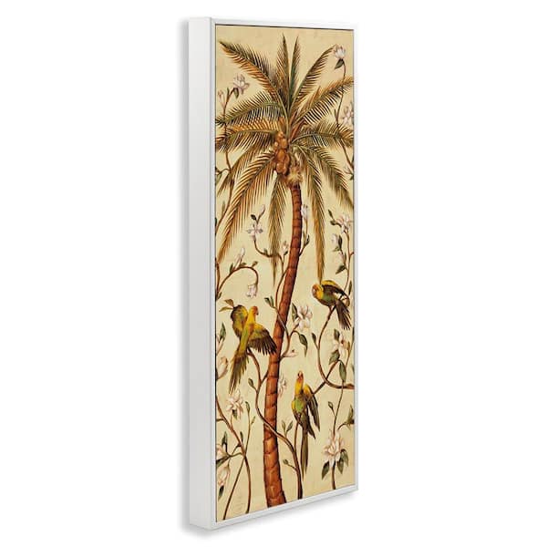 Parrots and Curvy Palm Tree by Rodolfo Jimenez White Framed Nature Giclee Art Print 24 in. x 10 in.