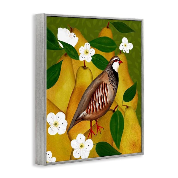 Partridge Bird and Pears by Michelle Ingari Designs Gray Framed Food Giclee Art Print 20 in. x 16 in.