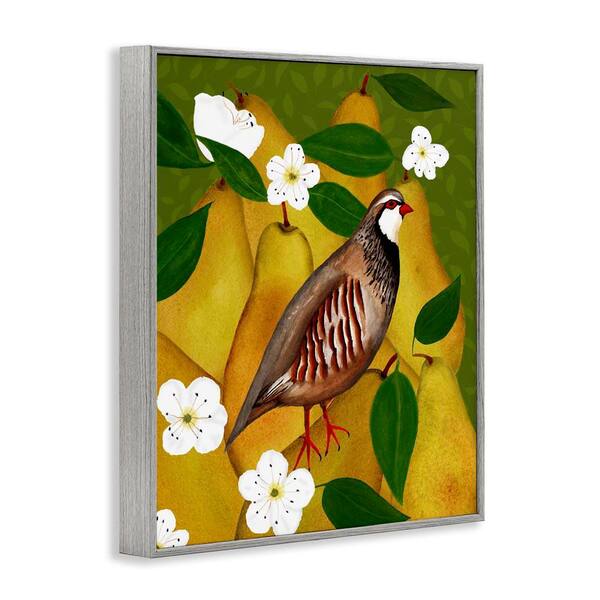 Partridge Bird and Pears by Michelle Ingari Designs Gray Framed Food Giclee Art Print 30 in. x 24 in.