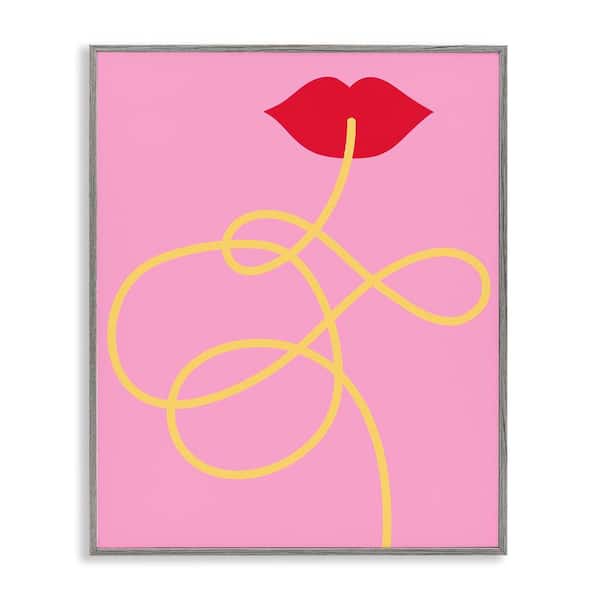 Pasta Noodle & Lips by Daphne Polselli Gray Framed Food Giclee Art Print 20 in. x 16 in.