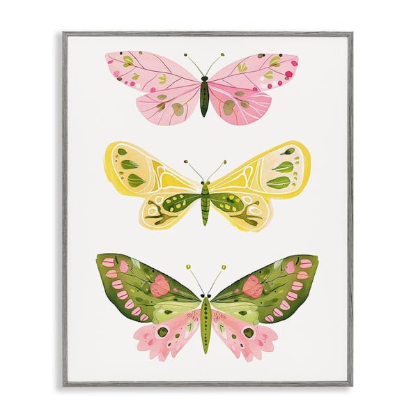 Pastel Butterfly Trio by LSR Design Studio Gray Framed Animal Giclee Art Print 30 in. x 24 in.