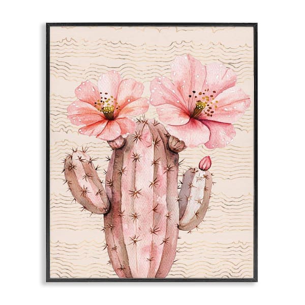 Pastel Cactus with Blooms by Lettered and Lined Black Framed Nature Giclee Art Print 20 in. x 16 in.