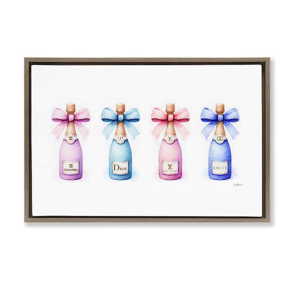 Pastel Champagne Bottles by Amanda Greenwood Brown Floater Frame Food Graphic Art Print 17 in. x 25 in.