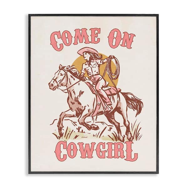 Pastel Come On Cowgirl by Victoria Barnes Black Framed Typography Giclee Art Print 14 in. x 11 in.