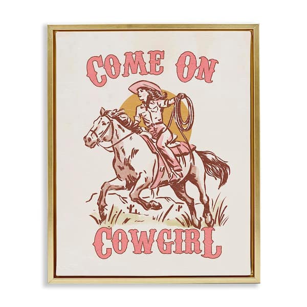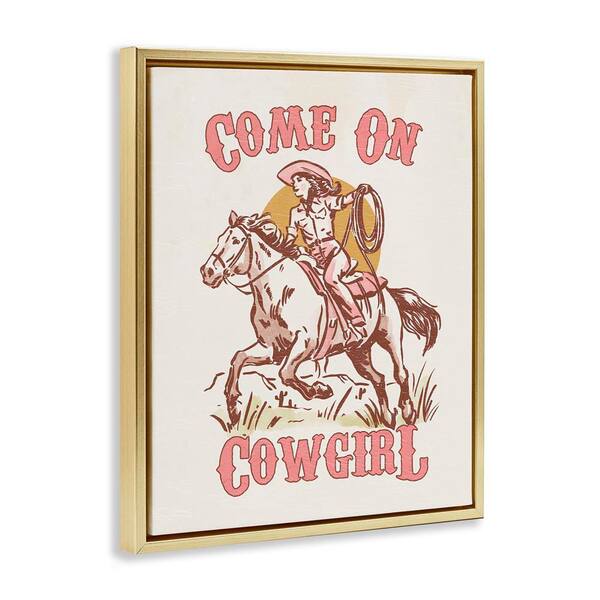 Pastel Come On Cowgirl by Victoria Barnes Gold Floater Frame Typography Graphic Art Print 21 in. x 17 in.