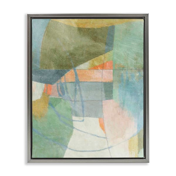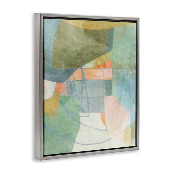 Pastel & Green Shapes by Suzanne Nicoll Gray Floater Frame Abstract Graphic Art Print 31 in. x 25 in.