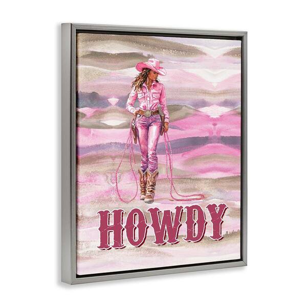 Pastel Howdy Cowgirl by Lettered and Lined Gray Floater Frame People Graphic Art Print 31 in. x 25 in.