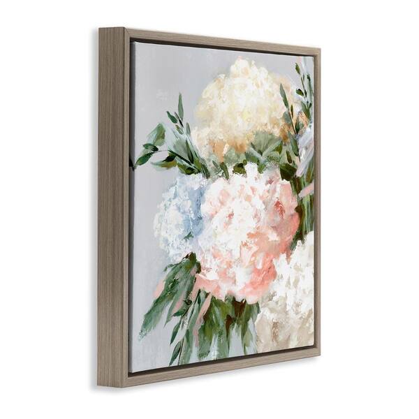 Pastel Hydrangea Blossoms by Alex Black Brown Floater Frame Nature Graphic Art Print 18 in. x 18 in.