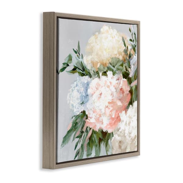 Pastel Hydrangea Blossoms by Alex Black Brown Floater Frame Nature Graphic Art Print 25 in. x 25 in.
