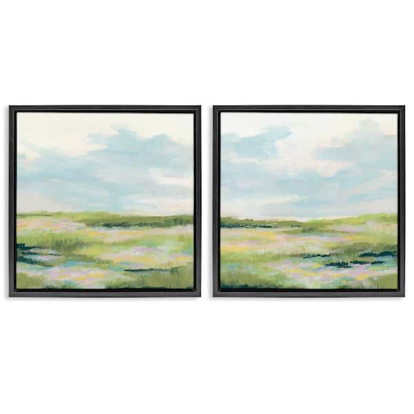 Pastel Meadow under Blue Sky by June Erica Vess 2 Pieces Black Floater Frame Nature Graphic Art Print 18 in. x 18 in.