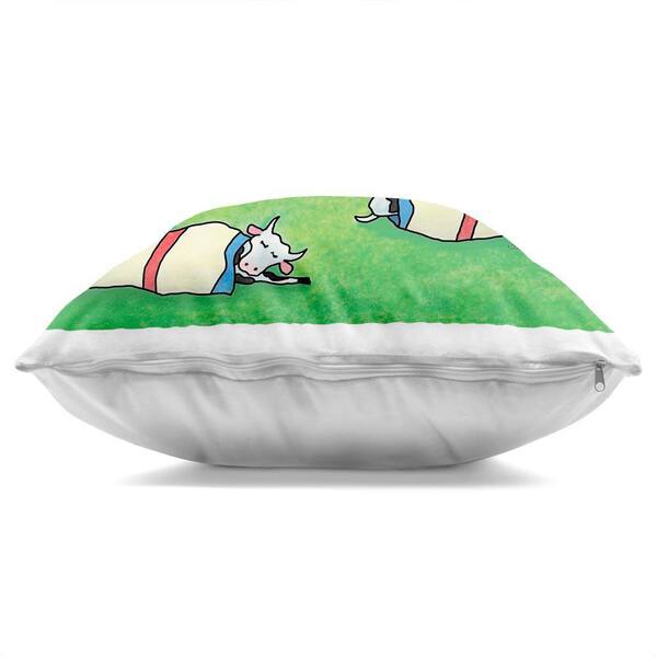 Pasture Cows Bedtime Green Abstract Polyester 18 in. X 18 in. Throw Pillow