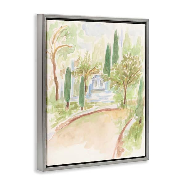 Path to Cottage Abstract by June Erica Vess Gray Floater Frame Nature Graphic Art Print 31 in. x 25 in.