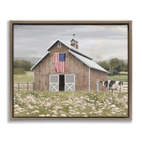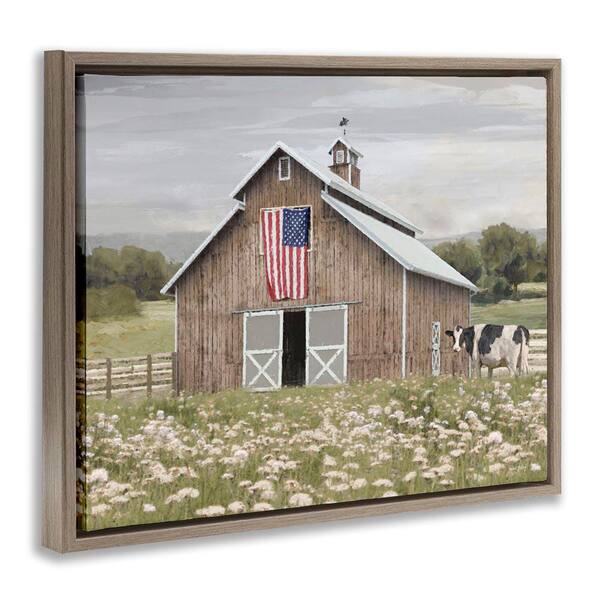 Patriotic Barn and Cow by Amber Sterling Brown Floater Frame Nature Graphic Art Print 17 in. x 21 in.