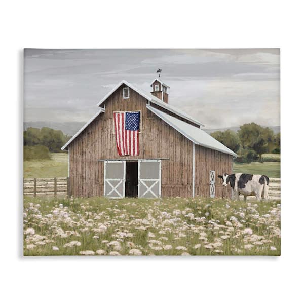 Patriotic Barn and Cow by Amber Sterling Unframed Nature Graphic Art Print 24 in. x 30 in.