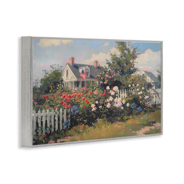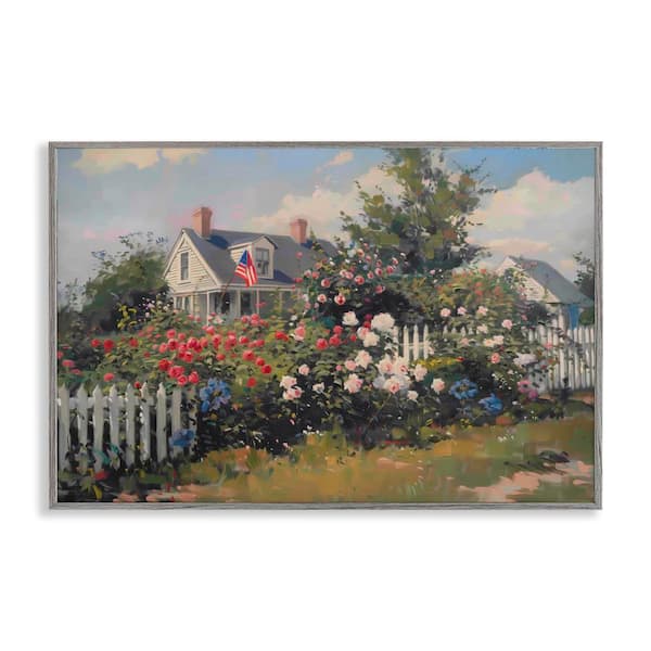 Patriotic Cottage Garden by Arlington Prints Gray Framed Nature Giclee Art Print 20 in. x 30 in.