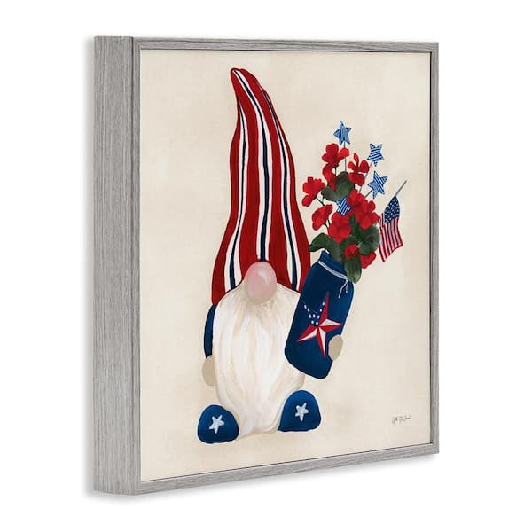 Patriotic Gnome and Flowers by Yvette St. Amant Gray Framed Nature Giclee Art Print 24 in. x 24 in.