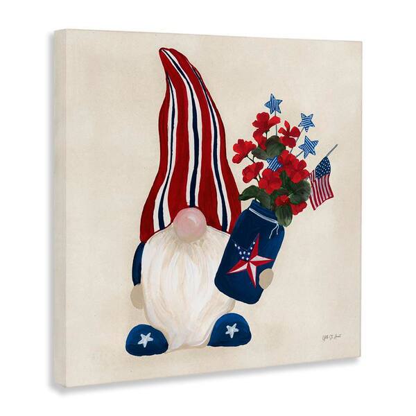 Patriotic Gnome and Flowers by Yvette St. Amant Unframed Nature Graphic Art Print 36 in. x 36 in.