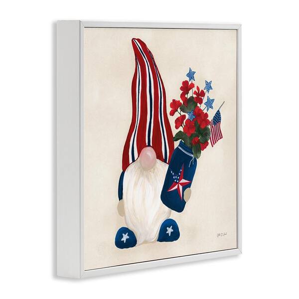 Patriotic Gnome and Flowers by Yvette St. Amant White Framed Nature Giclee Art Print 24 in. x 24 in.
