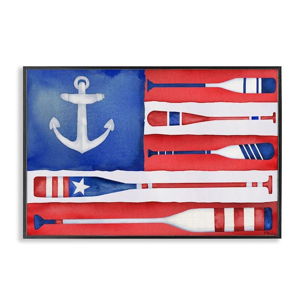 Patriotic Oar Flag by Paul Brent Black Framed Typography Giclee Art Print 12 in. x 18 in.
