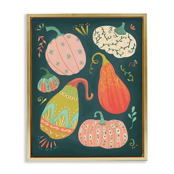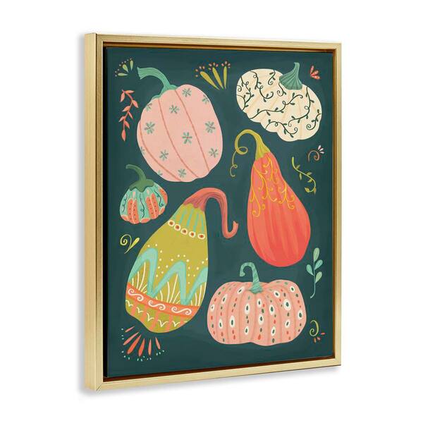 Patterned Autumn Gourds by Laura Watson Gold Floater Frame Food Graphic Art Print 21 in. x 17 in.