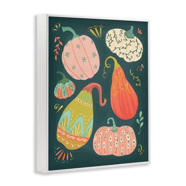 Patterned Autumn Gourds by Laura Watson White Framed Food Giclee Art Print 30 in. x 24 in.