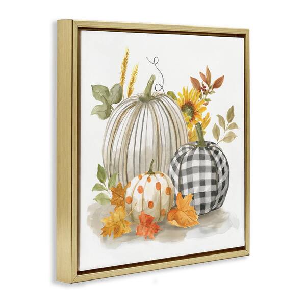 Patterned Pumpkins Autumn Harvest by Nan 1-Piece Gold Floater Frame Nature Graphic Art print 25 in. x 25 in.