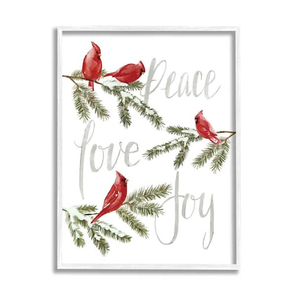 Peace Love Joy Cardinals by Dogwood Portfolio 1-Piece Framed Graphic Print Animal Poster Art Print 20 in. x 16 in.