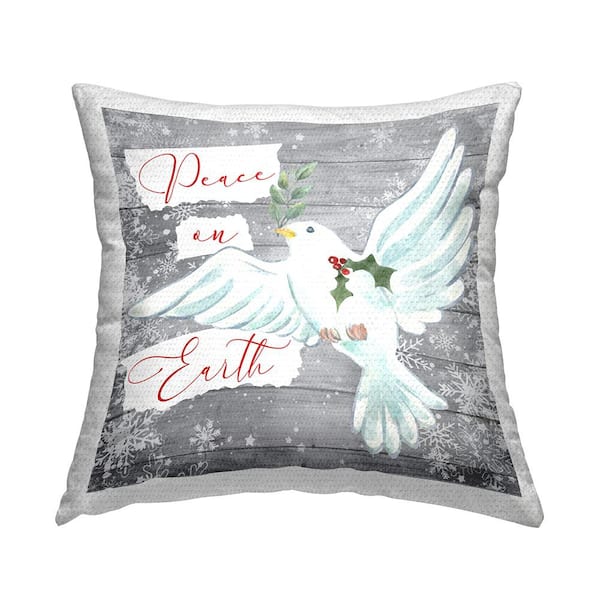 Peace On Earth Winter Dove Grey Square Outdoor Throw Pillow